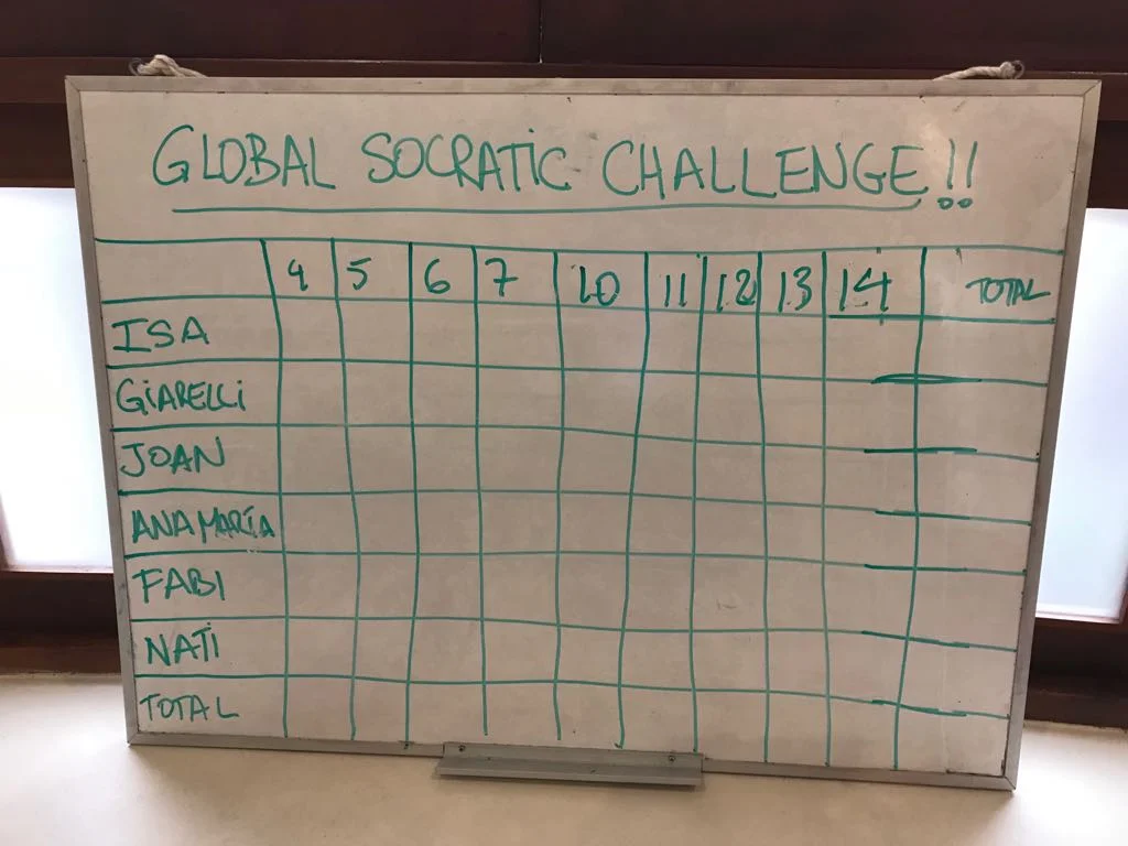 Finalmente, nos hemos sumado al concurso mundial de Acton Academy que está buscando a los guías más socráticos, es decir, a quienes no respondan preguntas. Vamos a contabilizar, con ayuda de los estudiantes, la cantidad de preguntas que las guías de TMA responden y así veremos qué tal lo estamos haciendo.