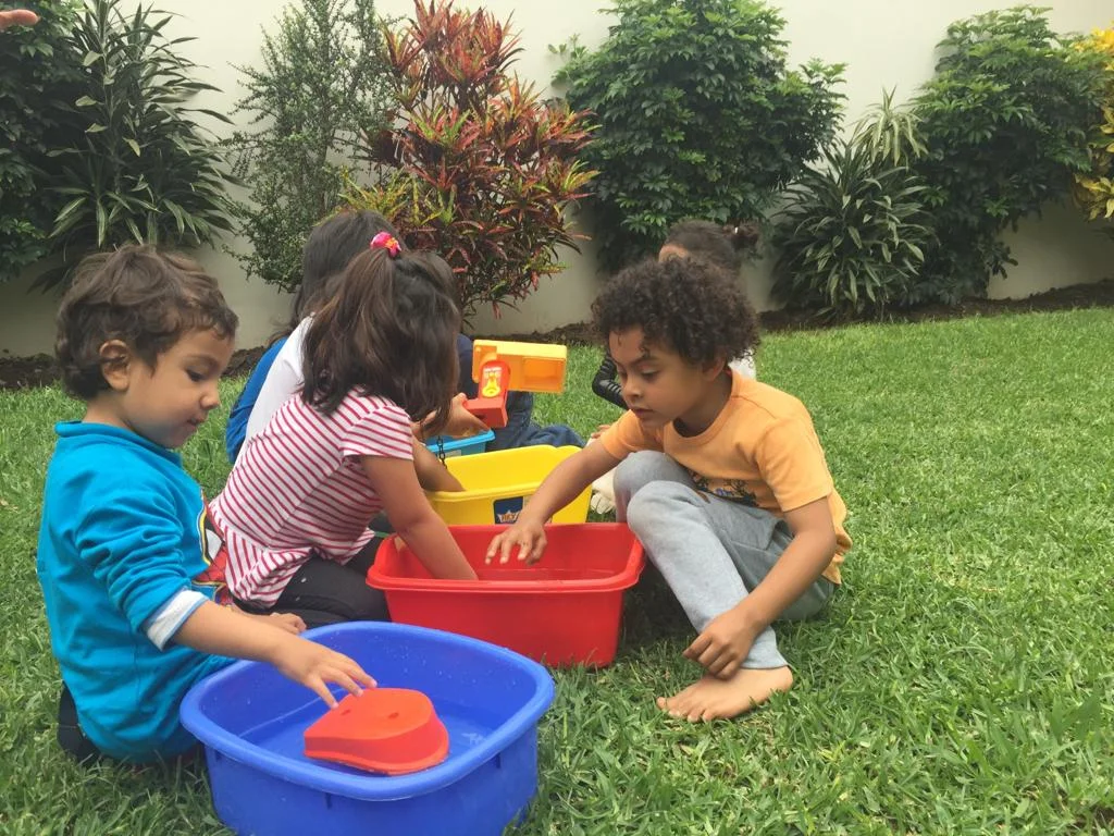Los Explorer también asumieron el reto náutico, convirtiéndose en piratas para llevar a cabo las misión encomendada por “la voz de su imaginación”. Así, los piratas “Fugaz estrella”, “Capitán Garfio”, “Colorada”, “Flores, mariposa, amor y arcoiris”, entre otros, buscaron y hallaron un tesoro escondido en el jardín. Luego, organizados en duplas, experimentaron con bateas y embarcaciones para ver si estas flotaban y cuántas piedras preciosas del tesoro encontrado podían cargar sin hundirse. Así, descubrieron que sus embarcaciones flotaban pero, si se llenaban de agua, se hundían. También identificaron que podían flotar y cargar piedras, en función a cómo distribuían el peso en la embarcación. Y que algunas embarcaciones tenían capacidad de llevar más tesoro que otras. Hacia el final de la misión, ensayaron hacer flotar un barquito de papel y apreciaron cómo al sumergirlo en el agua, el papel se debilitaba y se rompía.