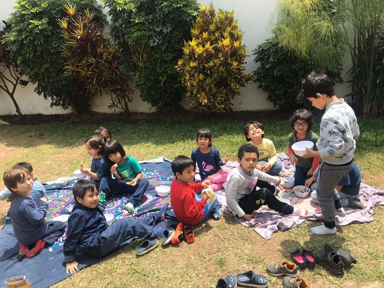 Por otro lado, ocurrieron algunas cosas divertidas y distintas esta semana. El lunes fuimos al parque y, como es habitual, jugamos mucho juntos, pero también encontramos nuevos juegos como las carreras de tres pies y las carreras de carretillas. Se fomentó una competencia sana que les gustó a todos. También hicimos picnic en el patio de Tinkuy para comer el snack. Tomaron algunos pareos y se sentaron a comer, compartiendo un lindo momento juntos.