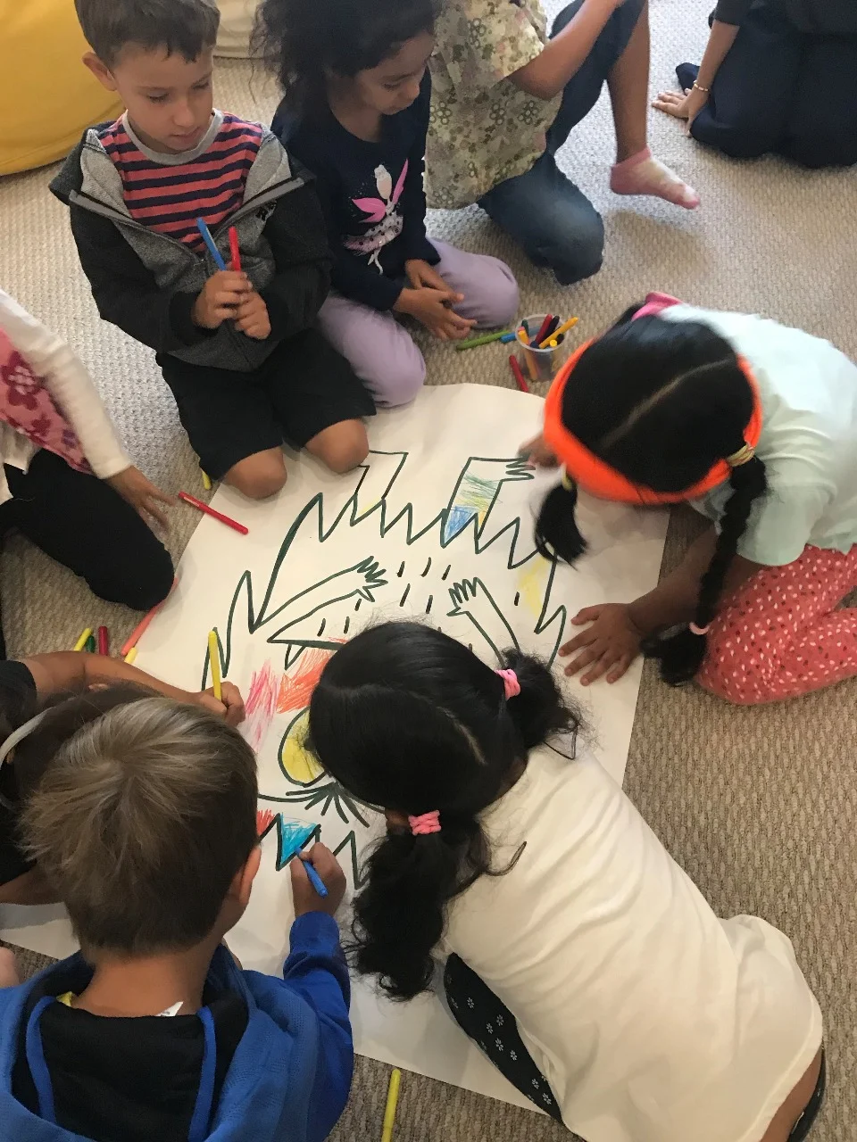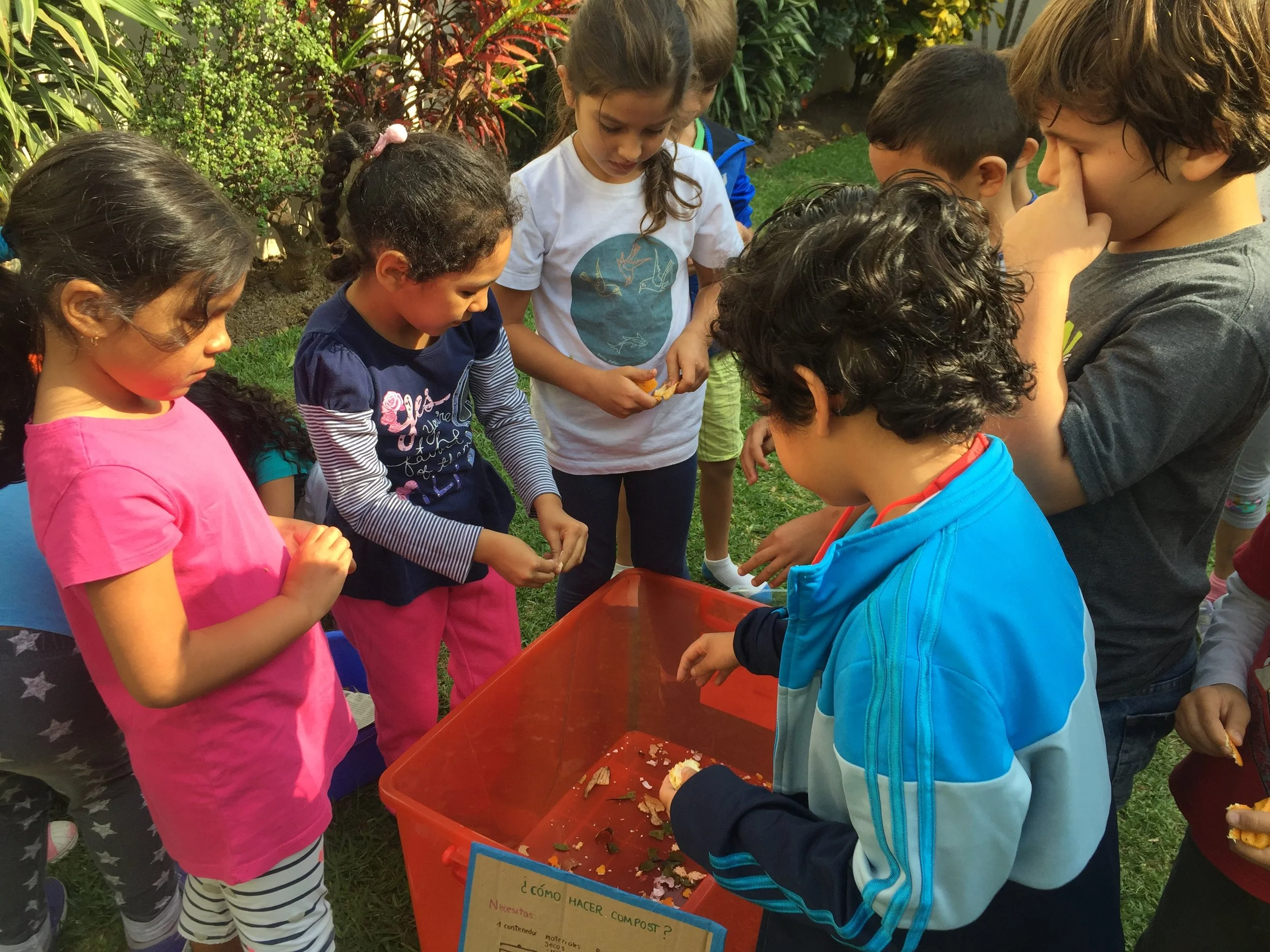 El jueves, en el Atelier aprendimos de Nati cómo compostar con residuos orgánicos y papel periódico. Desde el comienzo de la semana estuvimos recolectando residuos de frutas y verduras para que los Spark tuvieran la oportunidad de moler y mezclar con papel periódico su nuevo compost. Fue una actividad que les interesó a algunos más que a otros pero que todos aprendieron del proceso de cuatro pasos. Todos realizaron un dibujo después de la mezcla describiendo los pasos que habían seguido. Algunos héroes parecían saber intuitivamente la importancia de recolectar los residuos para convertirlos en abono para las plantas. En la tarde tuvimos Mini Quest, y los héroes se convirtieron en científicos haciendo un experimento de fotosíntesis donde ubicaron una planta ya crecida en el sol y la otra en total sombra. Formularon sus hipótesis: ¿Qué crees que va a pasar? Las dos plantitas fueron regadas por igual y los científicos observarán la próxima semana si notan algún cambio entre las dos plantas y recolectarán los datos para probar su hipótesis.