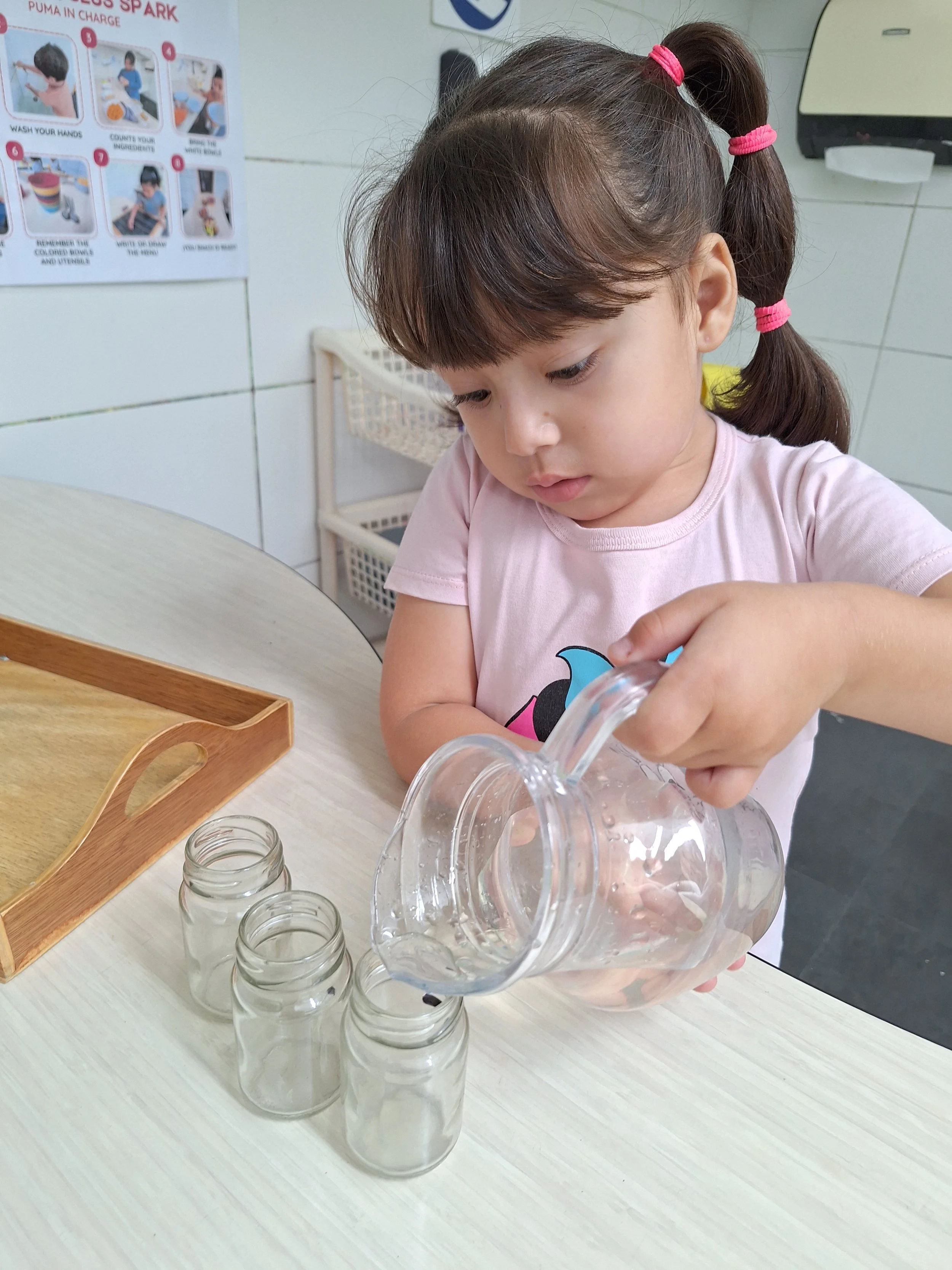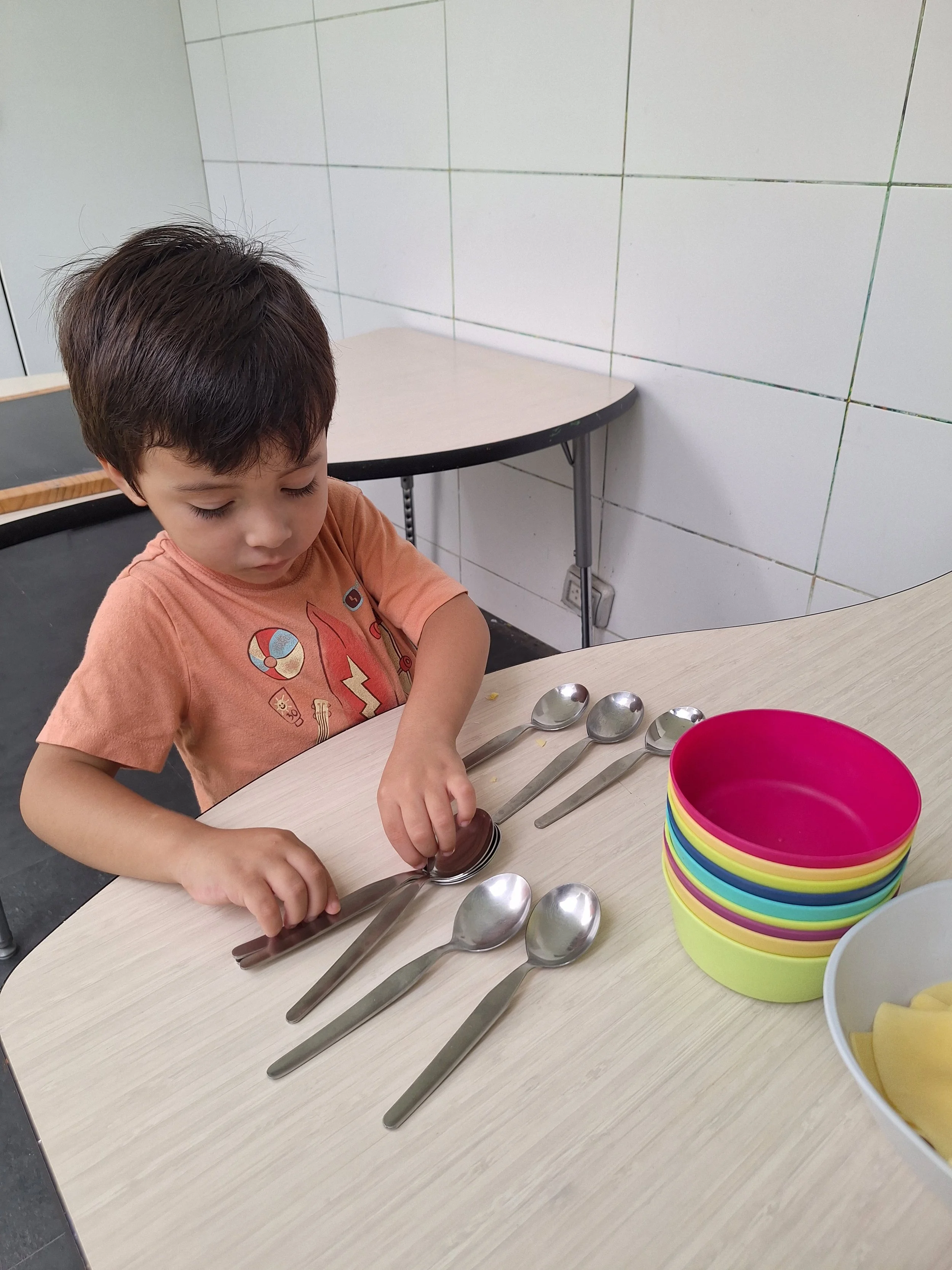 They set up the snack so that even the youngest Pumas can serve themselves with confidence and autonomy. They use real dining ware and take responsibility for cleaning up afterward. In this way, snack time goes beyond nourishment and becomes a holistic learning experience.